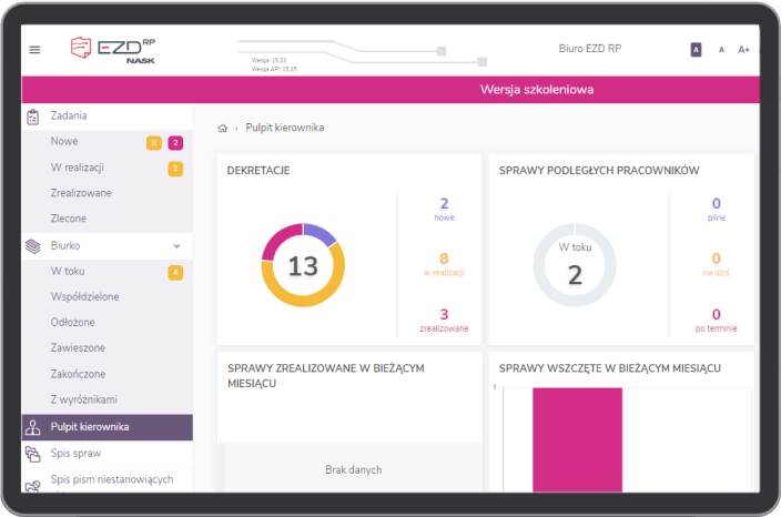 Dokumentację systemu EZD RP znajdziesz na stronie NASK w sekcji poświęconej EZD RP.